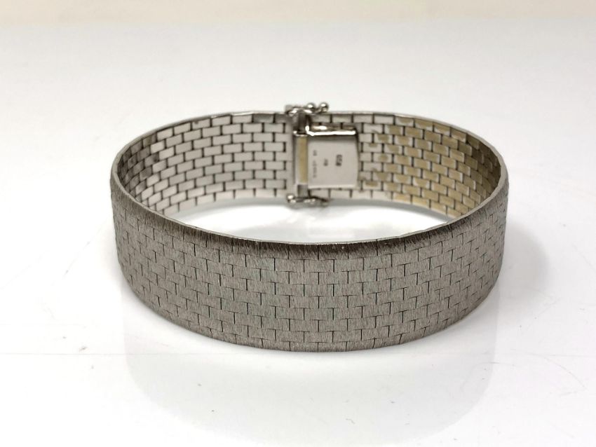 An 18ct white gold flat link bracelet, weight 59.5 grams