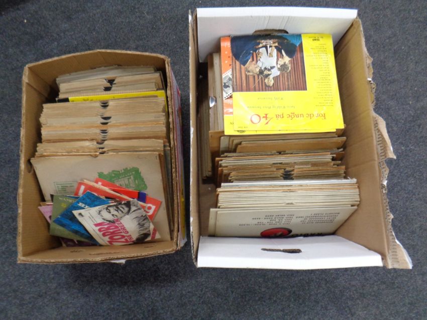 Two boxes of vinyl LP records, 78's and 7" singles : classical etc