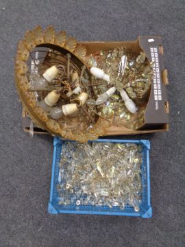 Two antique light fittings with glass drops
