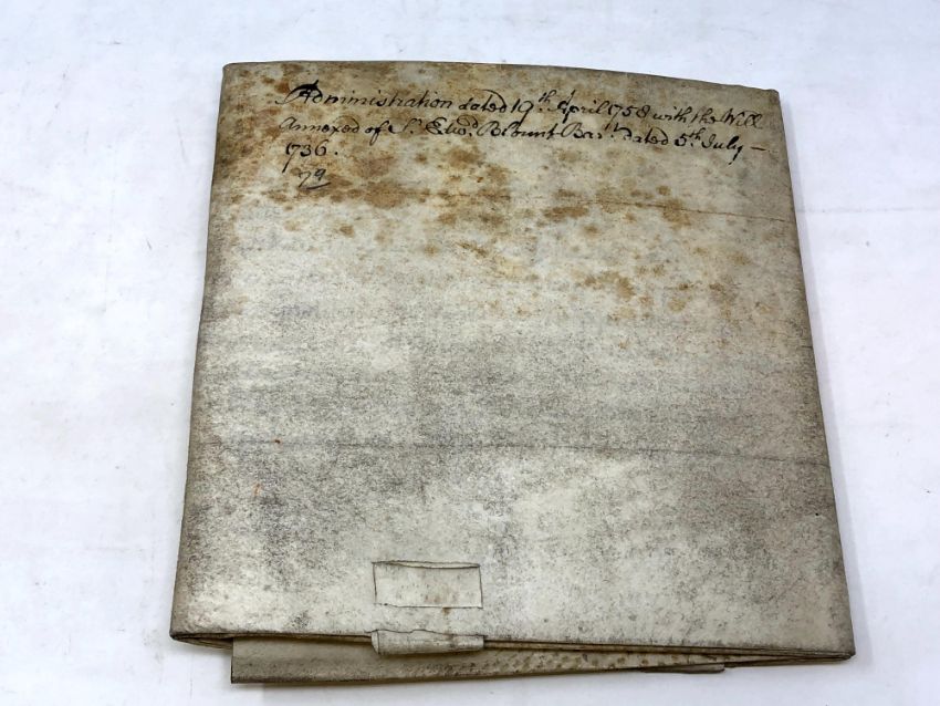 A velum document dated 1758 relating to Edward Blount of Shropshire