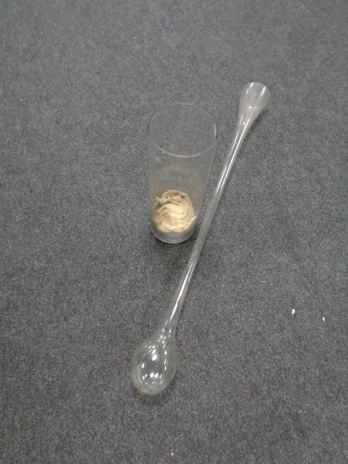 A glass yard of ale together with a glass vase
