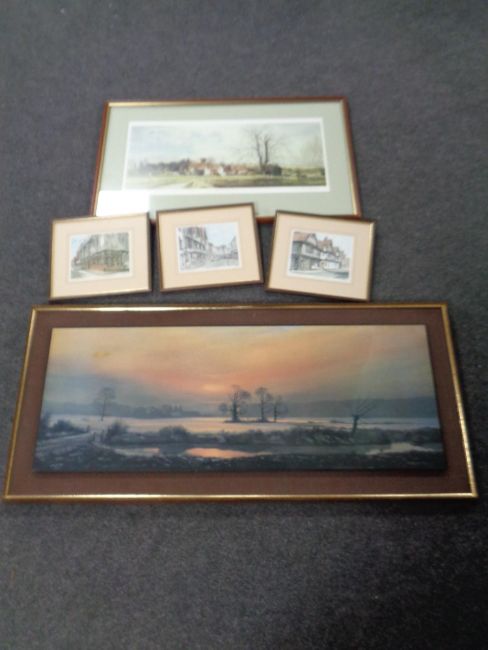 An Alan Ingham signed limited edition print, Sleepy Hamlet, No. 312 of 600, together with four other framed pictures