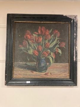 Carl Sarauw : Still life with tulips in a vase, oil on canvas, 63 x 62 cm
