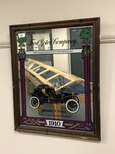 An advertising picture mirror - Ford Motor Company Model T Ford, 52 cm x 42 cm, framed.