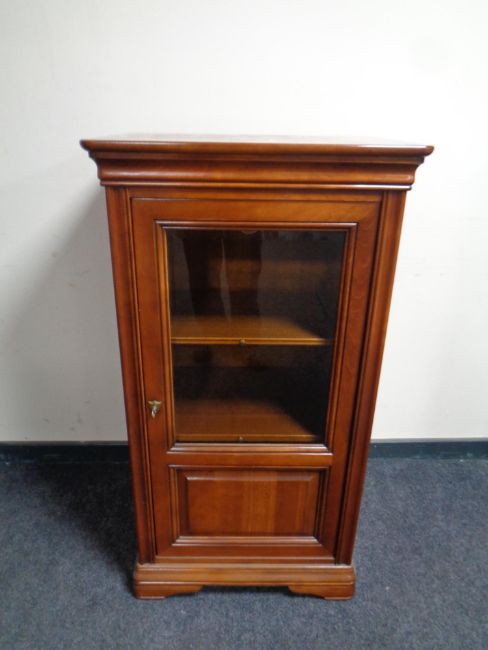 An audio cabinet in a mahogany finish