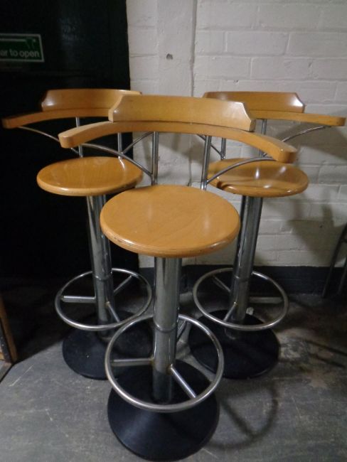 A set of three contemporary beech and metal bar armchairs
