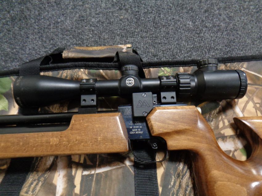 A Czechoslovakian .22/ 5.5 mm calibre S200 air rifle with Hawke scope, silencer, in a camouflage carry bag