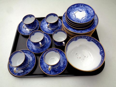 A tray containing 28 pieces of 19th century Copeland gilt rimmed blue and white tea china