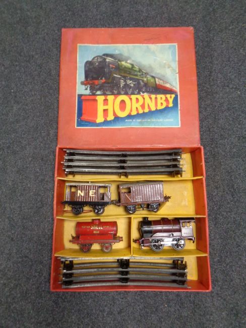 A Hornby Gauge O train tank goods set No. 45, boxed