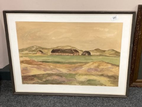 20th century school : Buildings by a hillside, watercolour, 56 x 38 cm