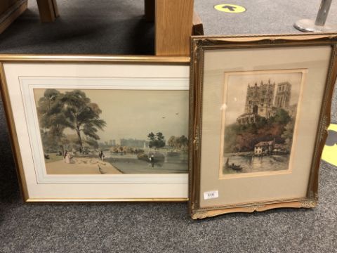 A hand coloured etching depicting Durham Cathedral, together with a further print by R. Nevill Haddock (2) 20 cm x 27 cm.