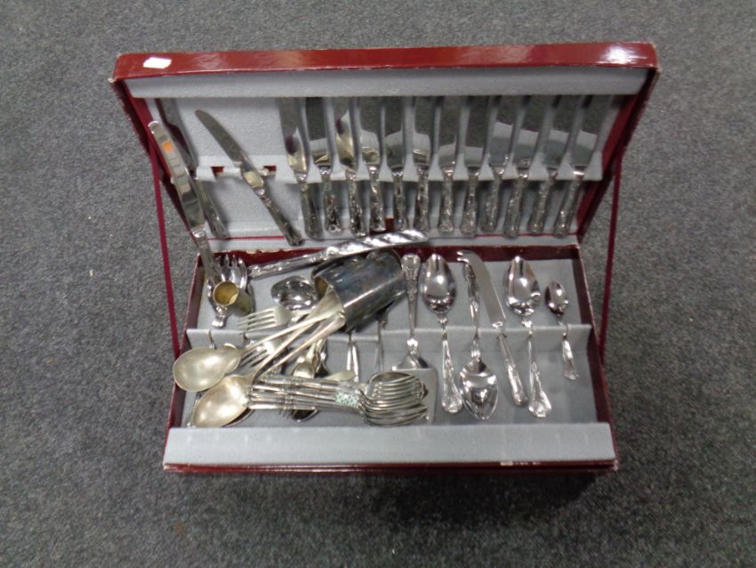 A canteen of Gourmet Collection plated cutlery together with further plated cutlery and tankard