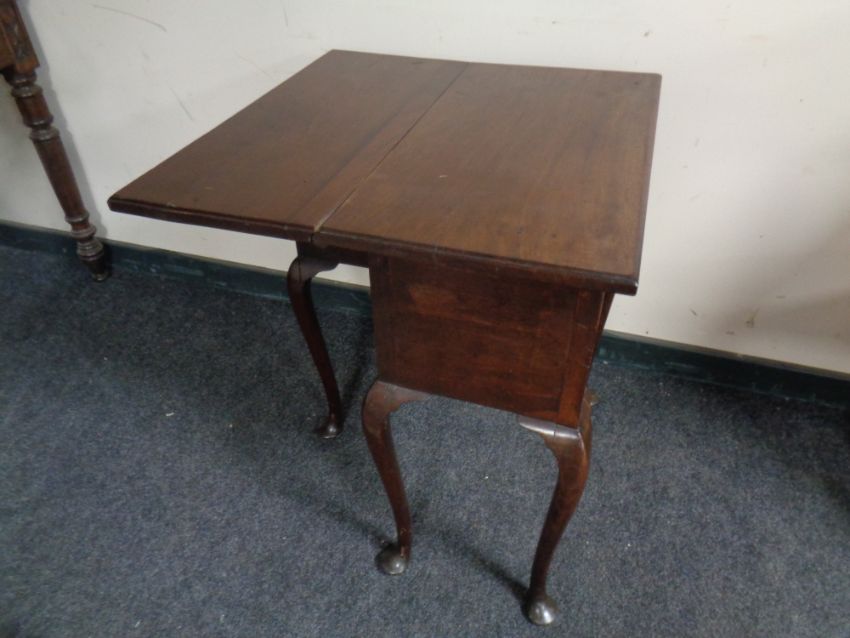 A 19th century mahogany flap sided cabinet on raised Queen Anne legs