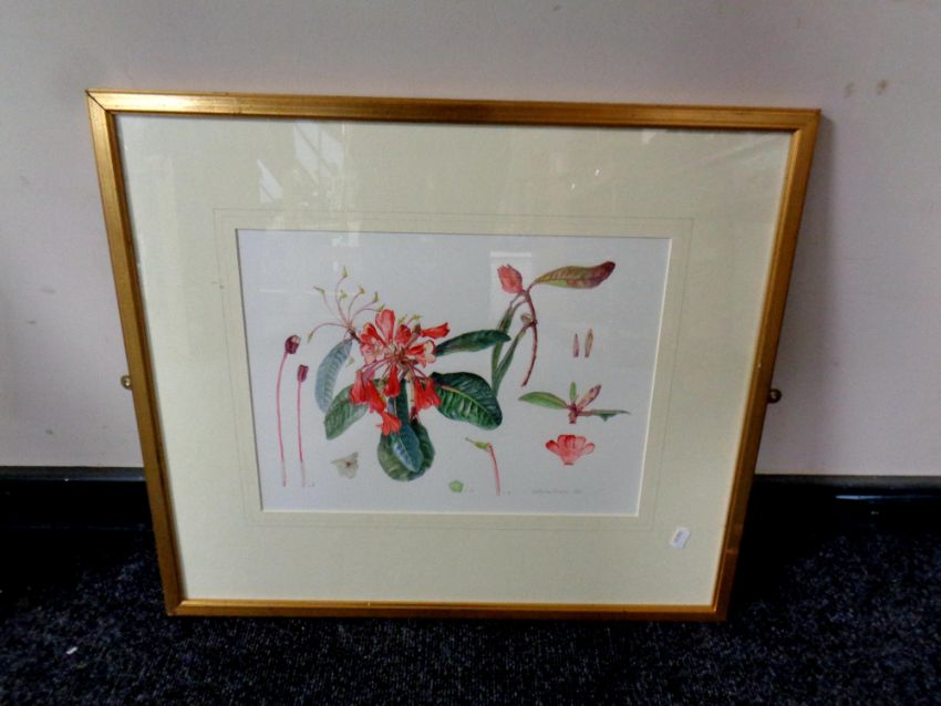 A Catherine Prentis watercolour study, Rhododendron, in a gilt frame