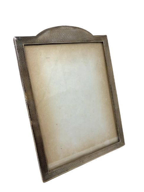 A George V silver easel photograph frame with engine turned decoration, Horton & Allday, Birmingham 1915, height 22cm.