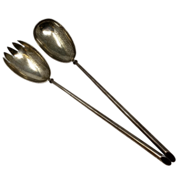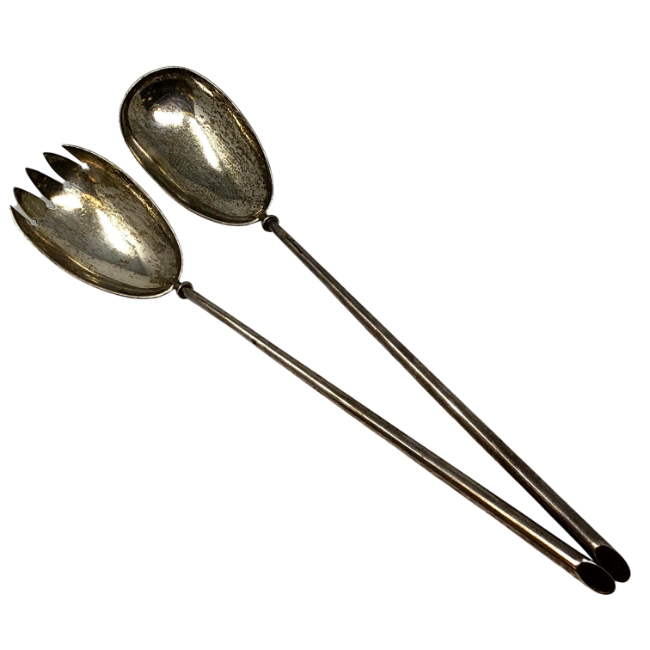 A pair of Victorian silver salad servers, A & J Zimmerman Ltd, Birmingham 1900, length 29cm.