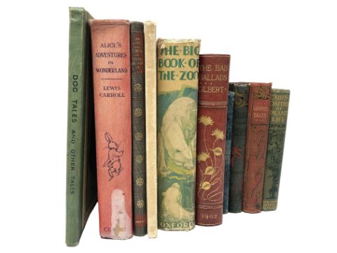Raphael Tuck & Sons Ltd (Publisher) : Dog Tales and Other Tales, a volume, together with nine further volumes relating to a variety of subjects and themes - Lewis Carroll's Alice's Adventures in Wonderland, The Life and Times of King George VI, Elizabeth Scott's Royal Family Picture Album, Herbert Strang's The Big Book of The Zoo, W. S. Gilbert's The Bab Ballads, Campbell Overend's The Magic Glass, Charles Lamb's Tales from Shakespeare, Grimm's Tales and F. Martin-Duncan's Curiosities of Plant Life. (10)