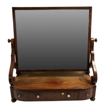 A 19th century mahogany dressing table mirror, bowfronted and fitted with three drawers, height 64 cm, width 58.5 cm, depth 25 cm.