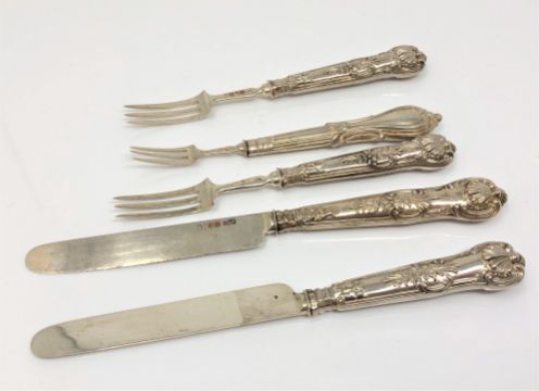 Five silver mounted Georgian/Victorian knives and forks