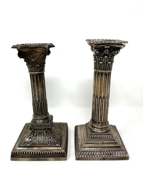 Two Victorian silver Corinthian column candlesticks, Sheffield 1896/97 (2)