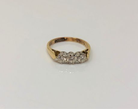 An 18ct gold three stone diamond ring, size K