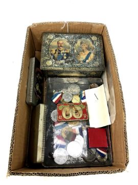 A collection of tins and medals relating to Royal Coronations, Weddings and Jubilee going back to Victoria