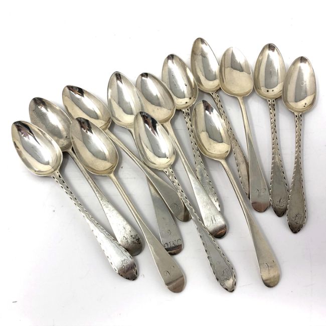 Twelve Georgian Scottish silver teaspoons