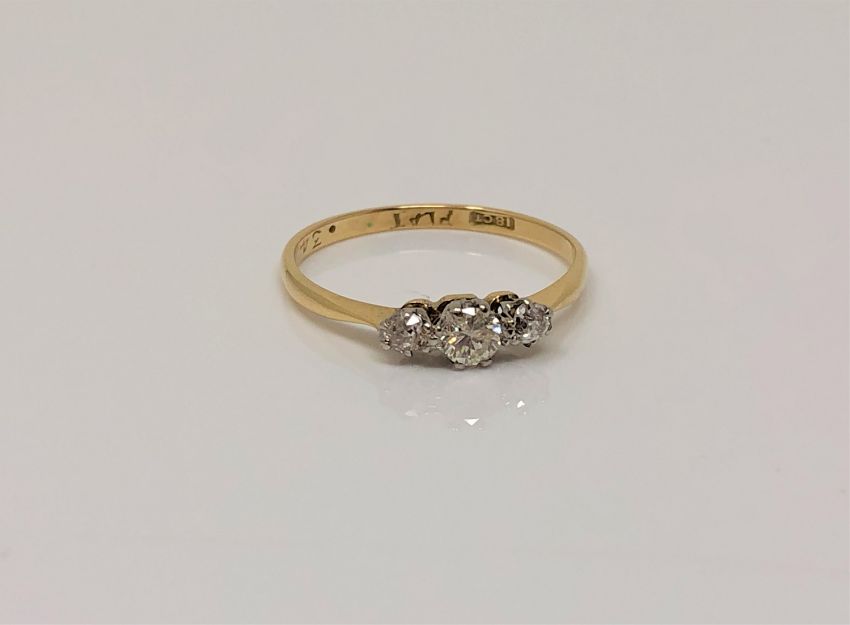 An 18ct gold three stone diamond ring, size O