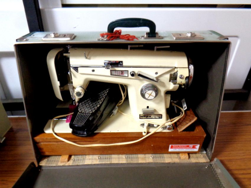 A 20th century Major Zig Zag electric sewing machine in case (continental wiring)