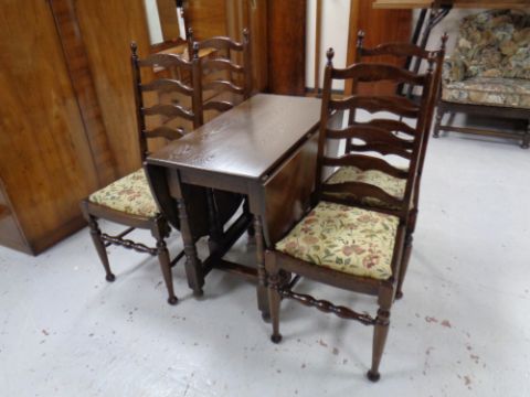 A good quality oak gate leg table together with a set of four ladder back chairs