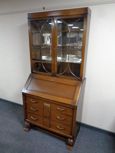An Edwardian oak bureau bookcase, height 192 cm