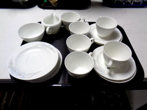 A tray containing a 20 piece Wedgwood Ice flower tea service