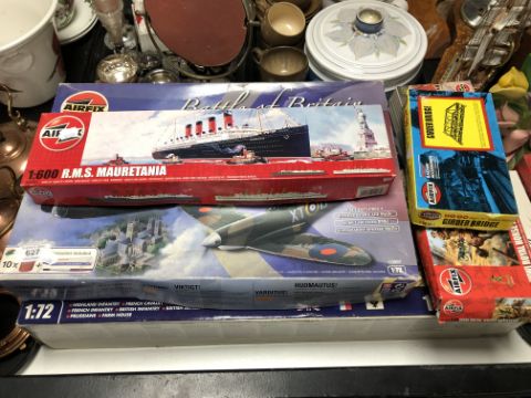 Eight assorted Airfix modelling kits to include The Battle of Waterloo, R. M. S. Mauritania etc
