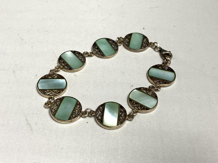 A silver stone set bracelet