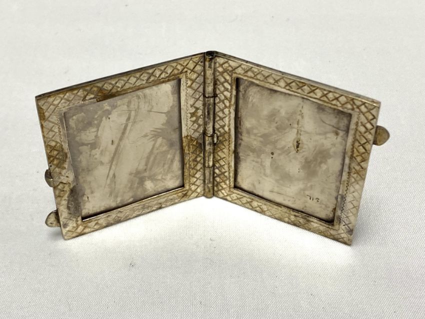 A silver hinged miniature photograph frame