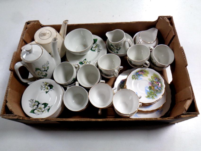 A box containing two tea sets by Woods and Son and Royal Vale