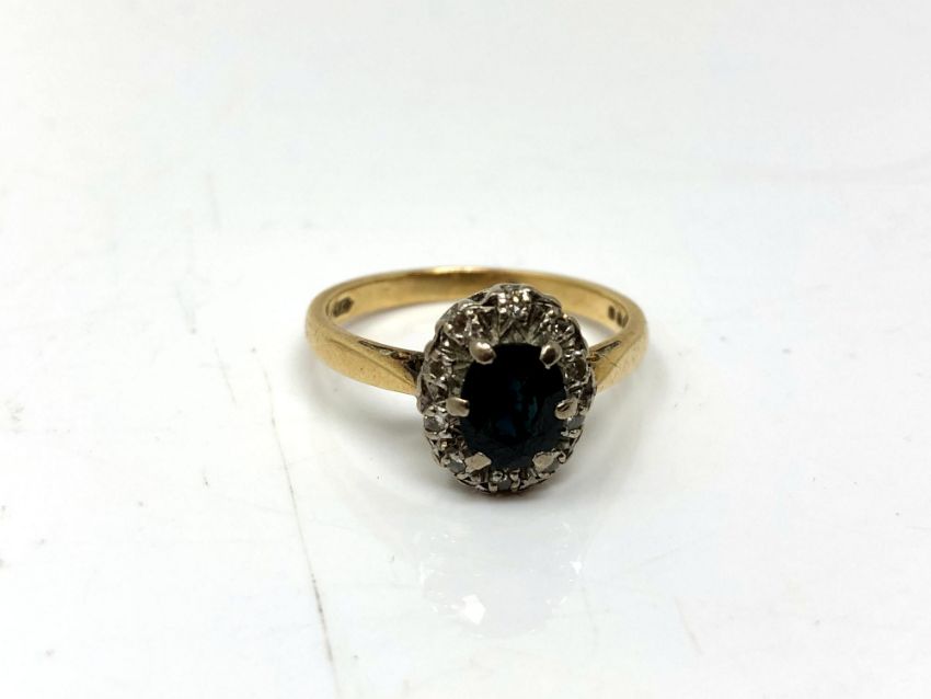 An 18ct gold sapphire and diamond ring, size O.