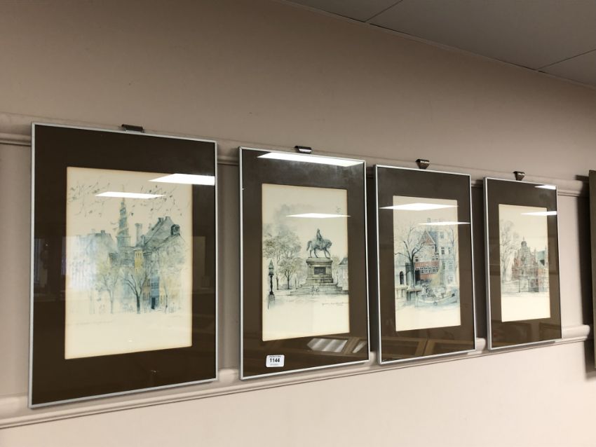 Four colour prints depicting buildings and monuments, each is 30 x 42 cm