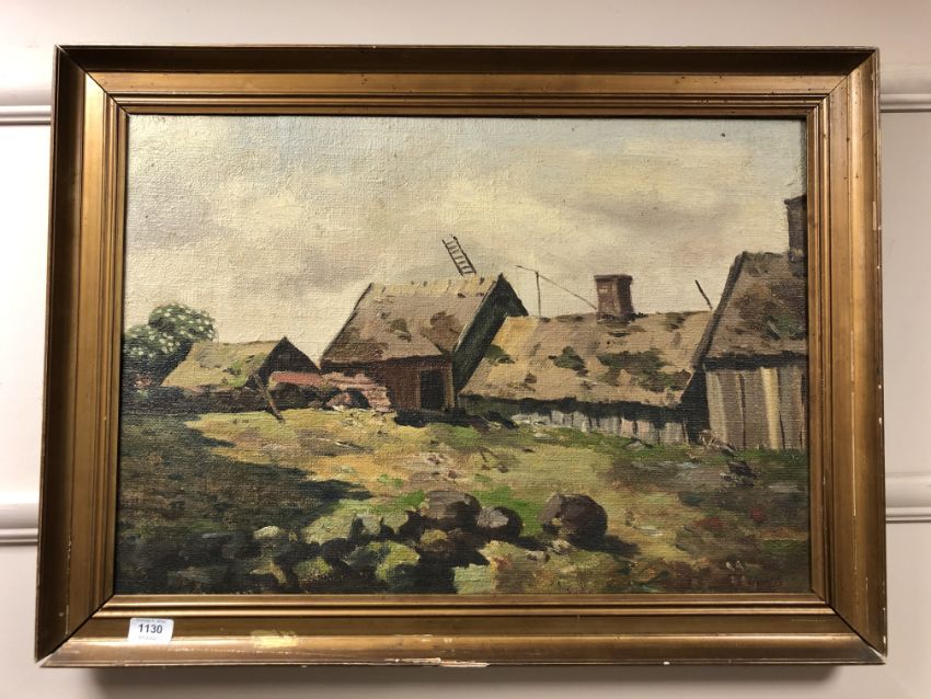 Continental school : A farmstead, oil on canvas, 64 x 44 cm