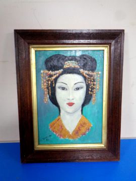 A 20th century J Thornton oil on board of a Geisha, in oak frame