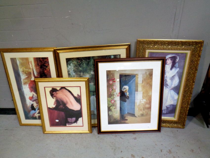 Five contemporary framed prints, female figures