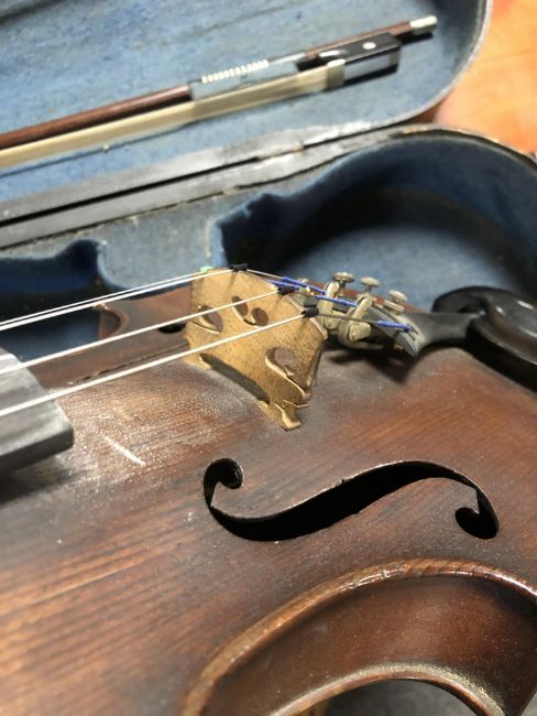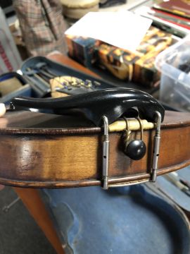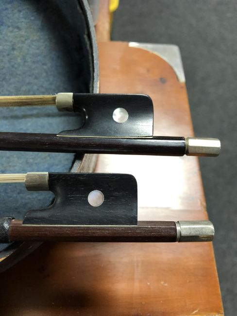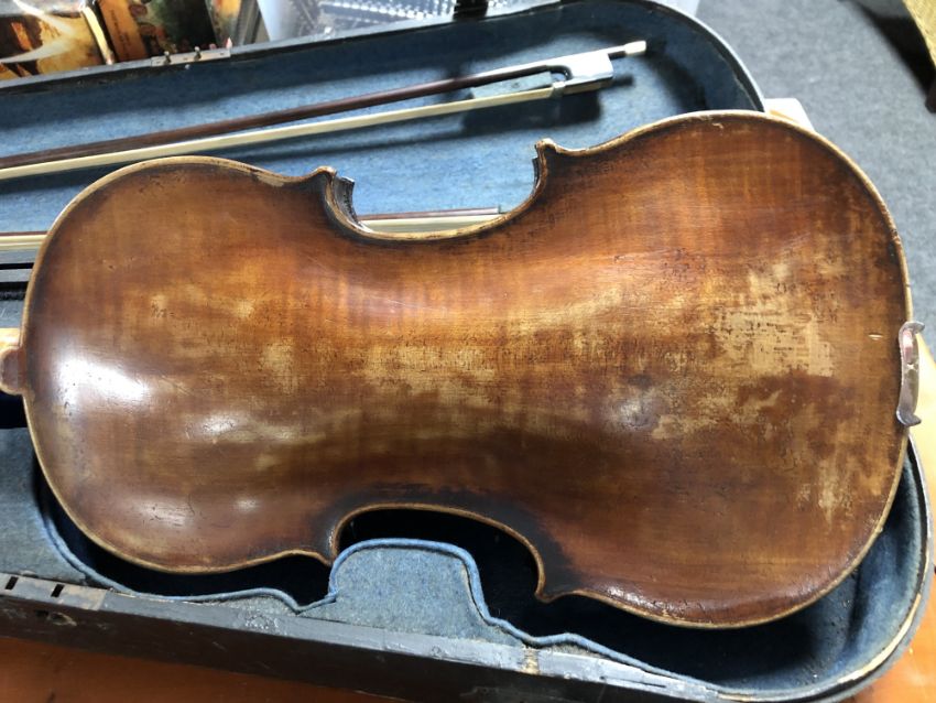 An antique violin, a copy of Pietro Antonius Dalla Costa, with internal label dated 1782, back length 14 inches, together with two bows, one stamped Lupot, in hard wooden case