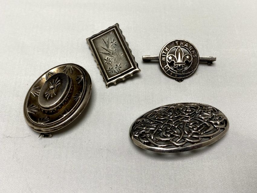 Four vintage silver brooches