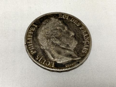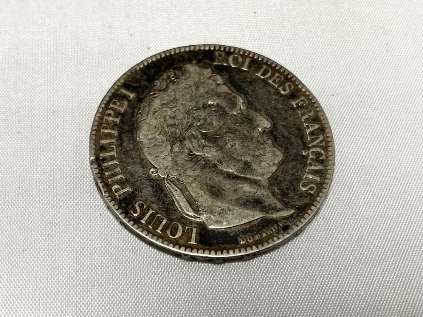 An 1857 silver five franc coin