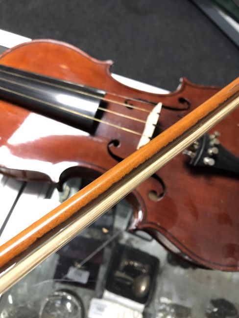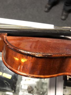Some historic damages around the edge of the body. Varnish deteriorating in various places. Otherwise generally in good condition. See images.