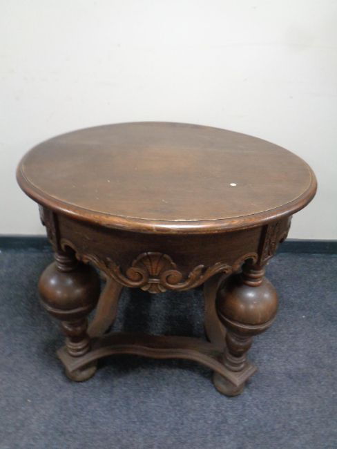 A continental oak circular coffee table on bulbous legs