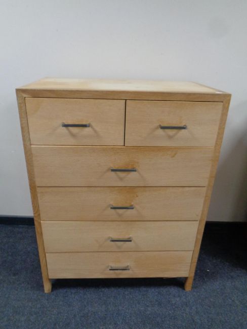 A continental blonde oak six drawer chest