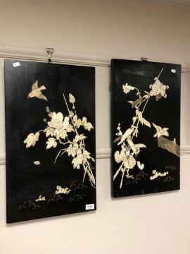 A pair of Japanese Shibayama panels, 36 cm x 60 cm. (2)