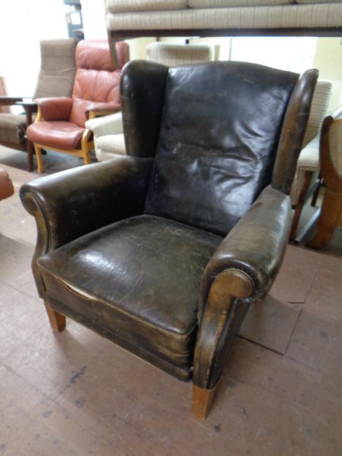 An early 20th century leather wingback armchair