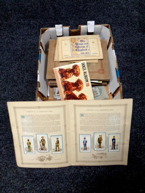 A box containing a very large quantity of cigarette cards in albums